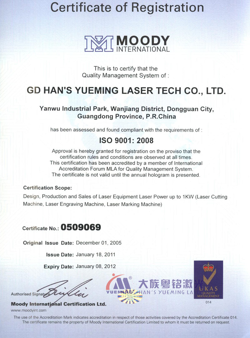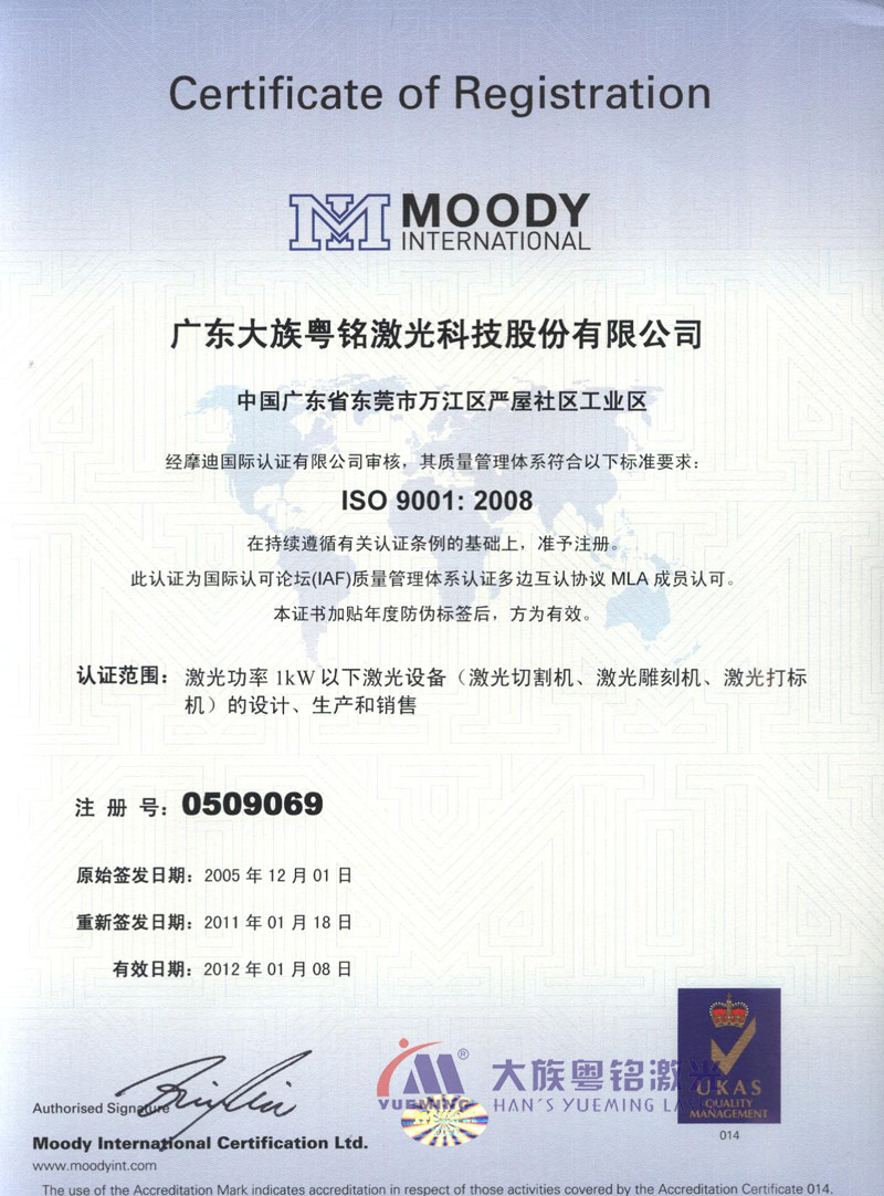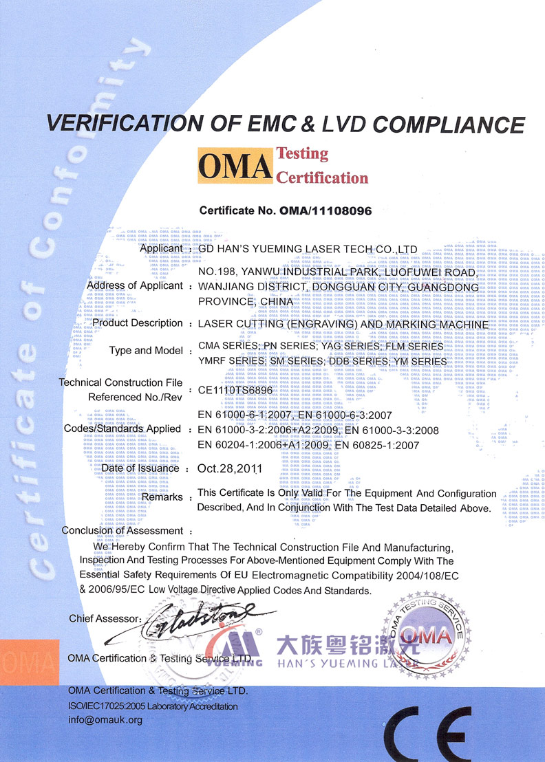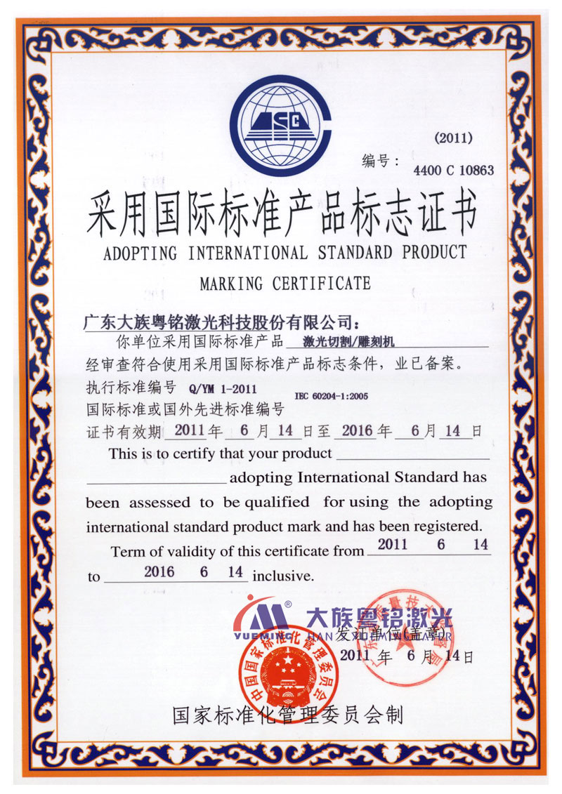 激光切割/雕刻機(jī)ISO 11553:1996國(guó)際標(biāo)準(zhǔn)認(rèn)證 | |