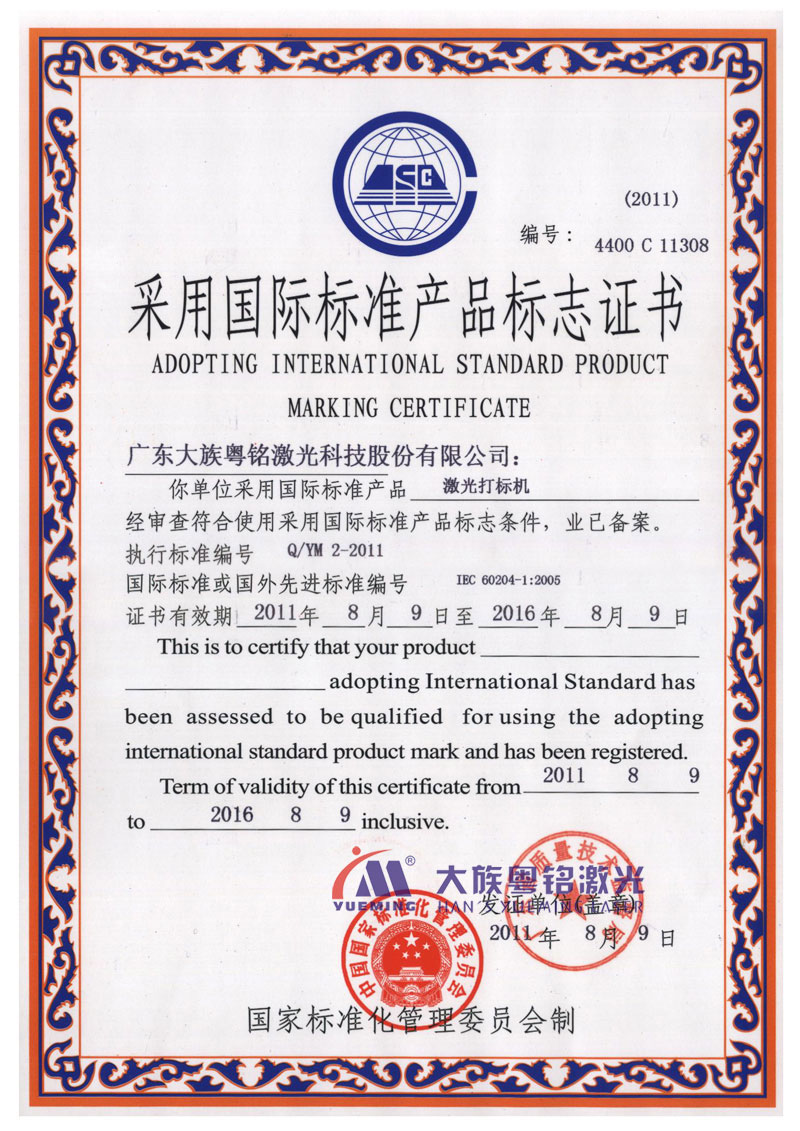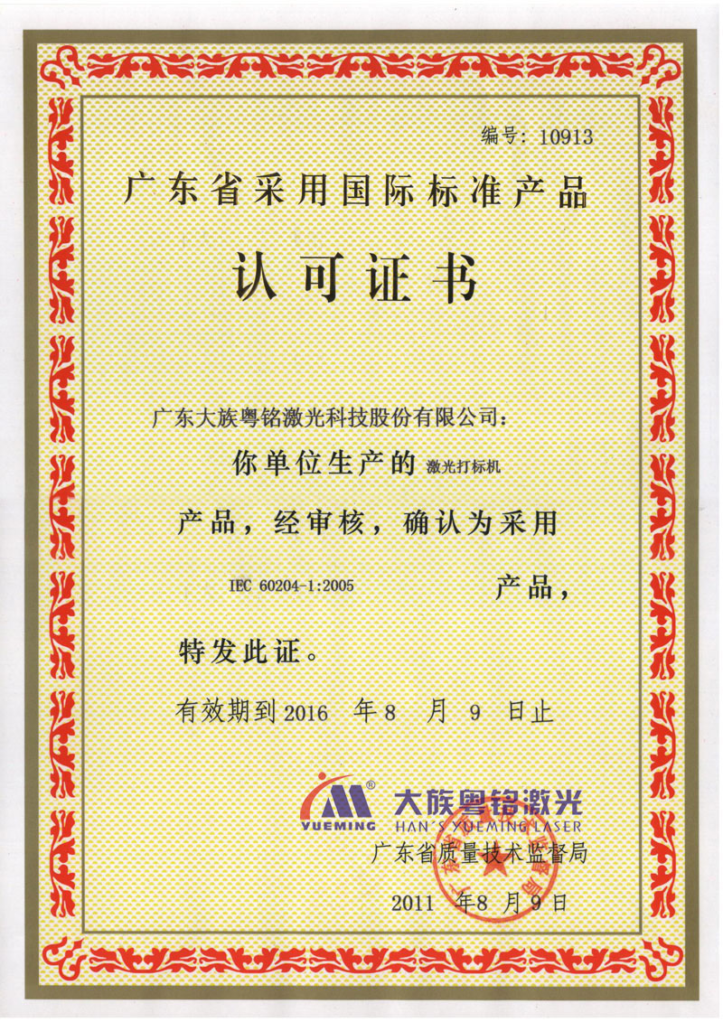 激光打標(biāo)機(jī)ISO 11553:1996國(guó)際標(biāo)準(zhǔn)認(rèn)證 |