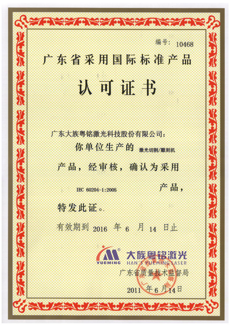 激光切割/雕刻機(jī)ISO 11553:1996國(guó)際標(biāo)準(zhǔn)認(rèn)證 |