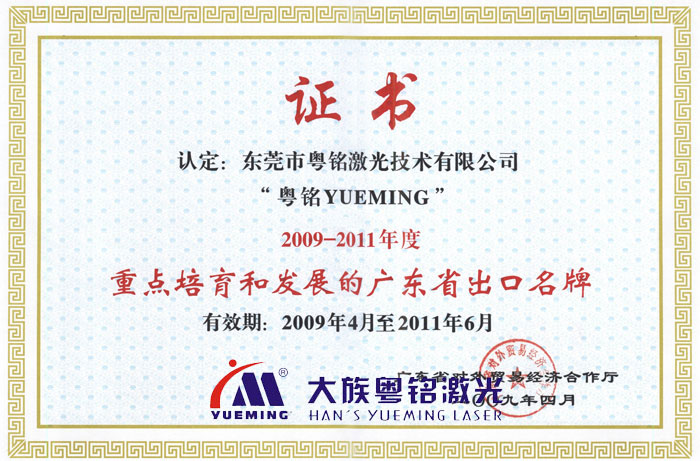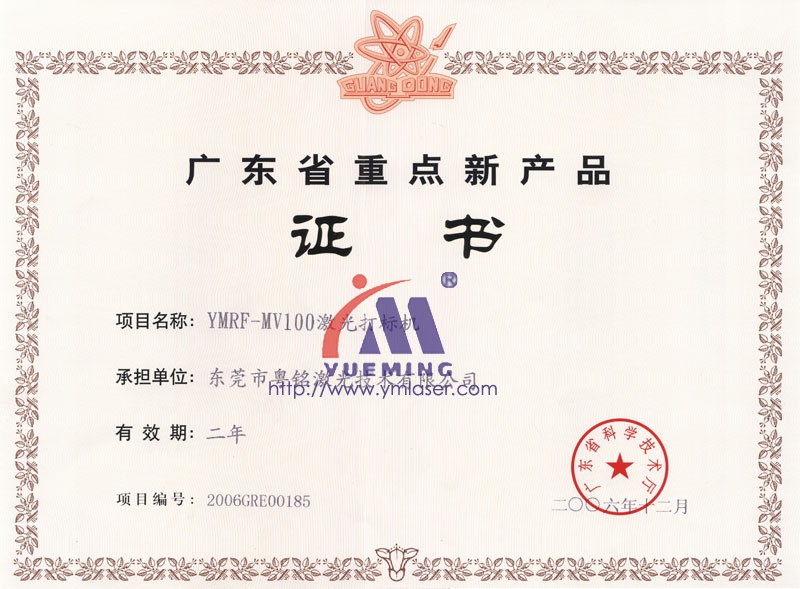 激光打標(biāo)機(jī)廣東省重點(diǎn)新產(chǎn)品證書(shū) | |