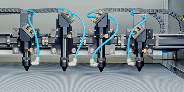 ★CMA1612-A四光頭激光切割機是我公司為了迎合市場的生產需求推出的一款多激光頭設備,該設備標準機型為四激光頭設計,比之傳統的雙頭機器效率可提高一倍,亦可根據客戶實際需要配置單、雙、三激光頭等。CMA1612-A四光頭激光切割機最大可加工幅面為1650mmx1200mm,尤其適合面料較大、加工圖形較小產品的一次性排版加工。