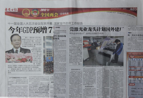 莞激光業龍頭計劃國外建廠 - 2012-03-07