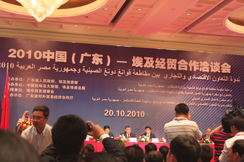 11月20日,“2010中國(guó)(廣東)-埃及經(jīng)貿(mào)合作洽談會(huì)”在開羅君悅酒店舉行。本次大會(huì)由廣東省人民政府、埃及投資部主辦,廣東省外經(jīng)貿(mào)廳承辦,中國(guó)駐埃及大使館、埃及投資總局、埃中商務(wù)理事會(huì)協(xié)辦。