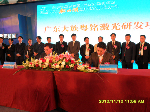 11月10日,東莞松山湖首次以“國家級高新區(qū)”的身份召開了2010深圳推介會。包括中國聯(lián)通、大族粵銘激光在內(nèi),松山湖此行一共簽約了36個項(xiàng)目,總金額125億元。與前幾次招商推介會相比,此次招商最大的亮點(diǎn)是大批央企巨頭和國際國內(nèi)一線高科技上市企業(yè)紛紛進(jìn)駐。