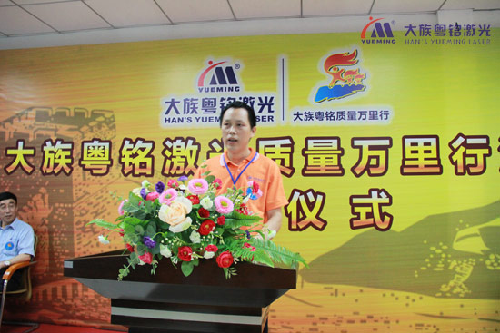 通過舉辦質量萬里行活動,大族粵銘激光將繼續全面提高產品質量、繼續全面完善質量管理體系,為客戶提供更加優質的產品;繼續全面提高服務質量,為客戶提供更便捷、更全面、更細致的高質量服務;繼續全面提高各環節的管理工作質量,為企業提供更加科學、高效的工作流程,為客戶和公司節約資源,創造效益;搭建并持續改善有利于各種人才實現人生價值的發展平臺和通道,繼續加強系統化的內部培訓,確保粵銘人可持續提升職業技能、職業素養,讓粵銘人在激烈的社會競爭中不斷提升自身價值;繼續加大技術研發的人才和資金投入力度,徹底改變營銷拉動增長為技術拉動企業增長,持續打造大族粵銘的核心競爭力,為企業的持續、高速發展奠定堅實基礎,同時也為我國制造業轉型升級做出大族粵銘應有的持續貢獻。