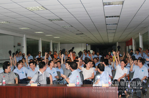 比賽的結(jié)果由觀眾評委和專職評委舉牌計分得出,實行交叉評分,充分體現(xiàn)了比賽的公平、公正、公開。最終,生產(chǎn)系統(tǒng)和客服系統(tǒng)以高票數(shù)贏得了比賽桂冠。卓勁松總經(jīng)理和劉志軍副總經(jīng)理分別為獲勝團(tuán)隊頒發(fā)錦旗和證書,并合影留念。
