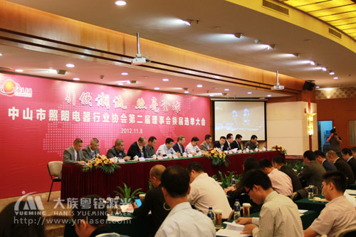11月8日,中山市照明電器行業協會第二屆理事會換屆選舉大會在古鎮舉行。中山市華藝燈飾照明股份有限公司董事長區炳文再次當選為協會會長,大族粵銘激光銷售總監劉峰被選為協會理事會理事之一。