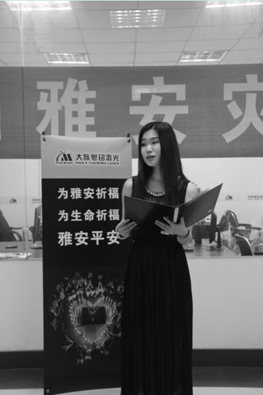 外貿(mào)部員工林慧萍為大家朗誦了連夜趕寫的散文《雅安,我們與你在一起》,“我們是一家人,災難讓我們心貼得更緊,災難讓我們同心協(xié)力、心手相牽。雅安,不用怕,愛的力量會讓我們戰(zhàn)勝一切災難,愛的力量會讓我們的家園重建……”這一聲聲感人肺腑的話語,沒有華麗的詞句,更沒有激昂的豪言,卻蕩氣回腸,溫暖人心,也跨越千里把大族粵銘和四川雅安連接在一起。