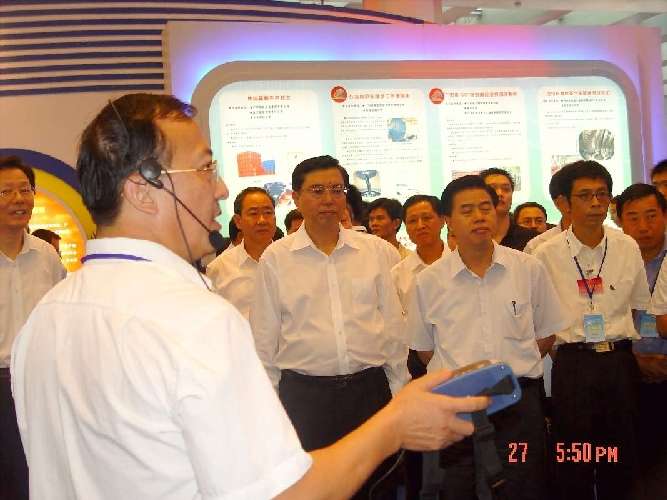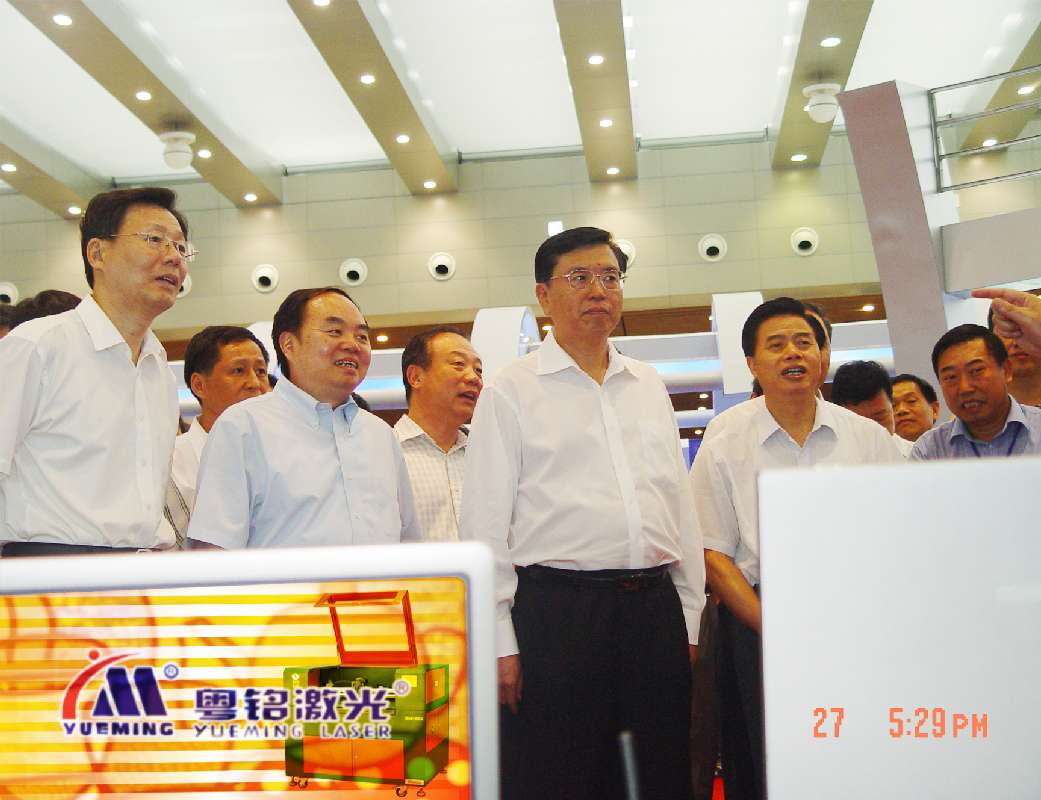 此次省部“產學研”成果展,粵銘激光多款獲獎產品參展,當中央政治局委員、廣東省委書記張德江,教育部部長周濟,省長黃華華,科技部黨組書記、副部長李學勇,教育部副部長趙沁平、吳啟迪,以及省領導朱小丹、鐘陽勝、宋海、佟星等領導視察到粵銘激光展位時駐足觀看,饒有興趣的聽取公司技術人員講解,了解到粵銘激光與高校合作產生聚變。其中,高功率軸流CO2激光器研發(fā)獲較大的成就,聽到企業(yè)擁有自主知識產權的核心技術時,省委書記張德江深表欣慰。