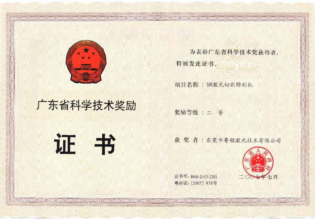 粵銘激光認真落實科學發(fā)展觀,充分認識到新時期、新階段提高自主創(chuàng)新能力的責任感、使命感和緊迫感,扎扎實實地推進自主創(chuàng)新各項工作。有了明確的指導思想,無論市場競爭多么激烈,多么復雜,企業(yè)發(fā)展重中之重仍然是技術(shù)于市場,優(yōu)先保證研發(fā)資金投入基礎(chǔ)上,瞄準國際一流激光加工應用技術(shù),采取引進、吸收、消化再創(chuàng)新是粵銘人發(fā)展創(chuàng)新之道。通過不斷研發(fā),企業(yè)科研成果碩果累累,而且成果轉(zhuǎn)化率高,同時取得良好的經(jīng)濟效益和社會效益。粵銘激光在行業(yè)內(nèi)貢獻學術(shù)新知,在市場不斷推出新品,努力為民族經(jīng)濟的偉大復興貢獻自己一份力量。經(jīng)專家嚴格評審,粵銘激光產(chǎn)品榮獲廣東省科學技術(shù)進步二等獎。