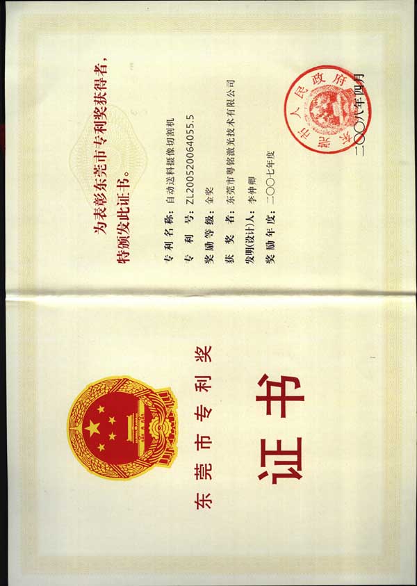 為了貫徹落實黨中央,國務院加強自主創新,旨在繼續推進專利技術與企業資本有機對接,鼓勵發明創造,支持創新創業,通過理論創新,加速專利技術商品化與產業化。經專利獎評審委員會評審,東莞市粵銘激光技術有限公司又一項專利獲“專利金獎”。面對越來越激烈的市場競爭,企業一般都會采取降低價格,提高品質,加強服務,擴大營銷。但是,最為犀利的競爭武器是知識產權。知識產權包括:商標權、專利權、版權、商業秘密、反不正當競爭、地理標志……。知識產權是企業最為重要的無形資產,對于知識產權的態度,決定了企業未來。在知識產權中,專利權尤為重要,專利權越多企業核心競爭力越強,擁有核心競爭力的企業才能牢牢占據銷售市場高端。
