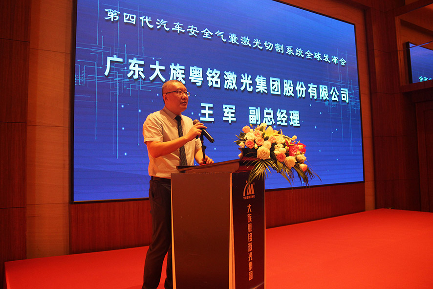 隨后,粵銘激光集團技術中心副總經理王軍先生做了「第四代汽車安全氣囊激光切割系統介紹」的主題演講。