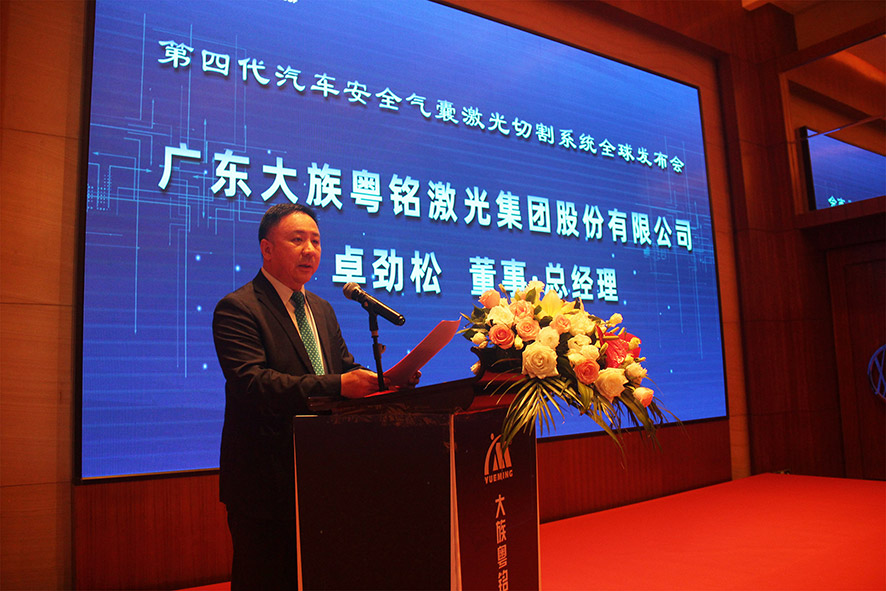 在嘉賓致辭后,粵銘激光集團執行董事兼總經理卓勁松先生了做了總結發言,卓總首先對各位領導、專家、合作伙伴和媒體朋友參與并見證本次第四代汽車安全氣囊激光切割系統新品發布會表示最熱烈的歡迎和最誠摯的感謝。