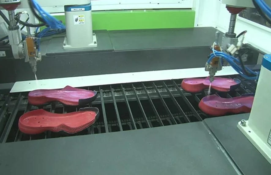 很多制鞋廠商的鞋底涂膠環節由人工借助半自動化設備來完成,但人工涂膠效率不高且不穩定,噴膠厚度不均勻,容易產生溢膠、缺膠等問題,難以達到質量要求。且生產環境有毒害物質會對員工健康安全造成影響,鞋底噴膠工藝已亟需進行自動化升級改造。全自動鞋底噴膠機應運而生,通過智能化、自動化、精細化生產模式,助力制鞋企業完成鞋底噴膠工藝的轉型升級。