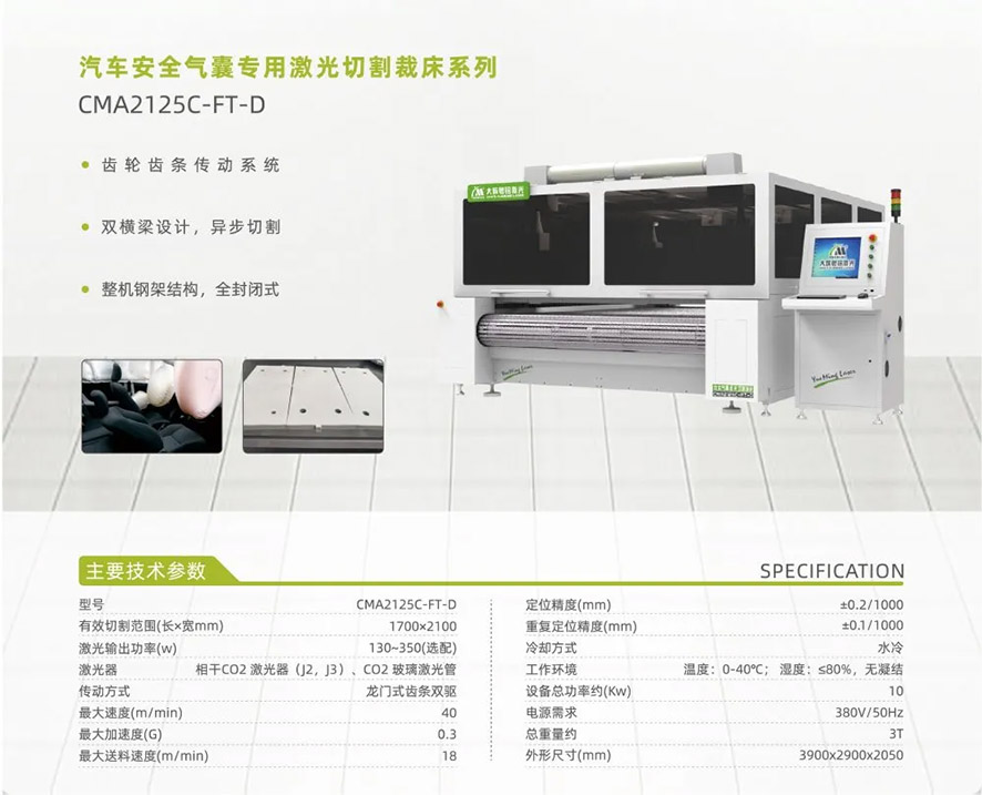 安全氣囊是汽車安全保障的重要裝置,它與座椅安全帶配合使用,可以為乘員提供有效的防撞保護。在汽車相撞時,安全氣囊使頭部受傷率減少25%,面部受傷率減少80%左右。為了讓安全氣囊的設計更有針對性,加工更加精準細膩,安全氣囊制造商普遍選擇激光切割設備進行加工。