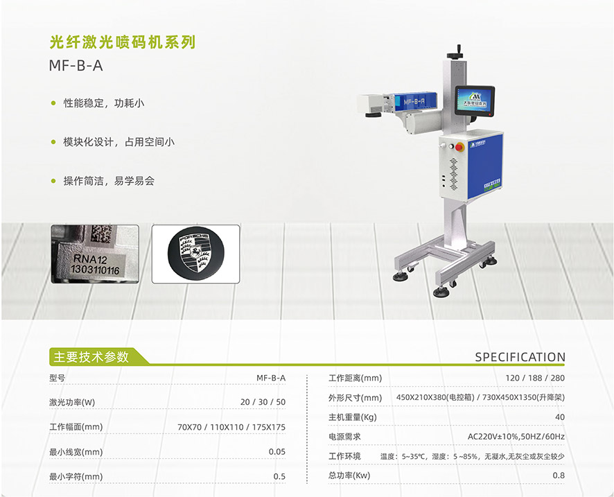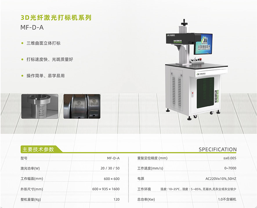 激光標記是利用高能量密度的激光對工件進行局部照射,使表層材料汽化或發生顏色變化的化學反應,從而留下永久性標記的一種打標方法,不需要接觸加工物品表面,所以可對任何異型表面材料進行快速標刻,而且工件不會變形和產生內應力。這對于追求效率與品質的汽車工業來說,無疑是最好的標記加工解決方案。