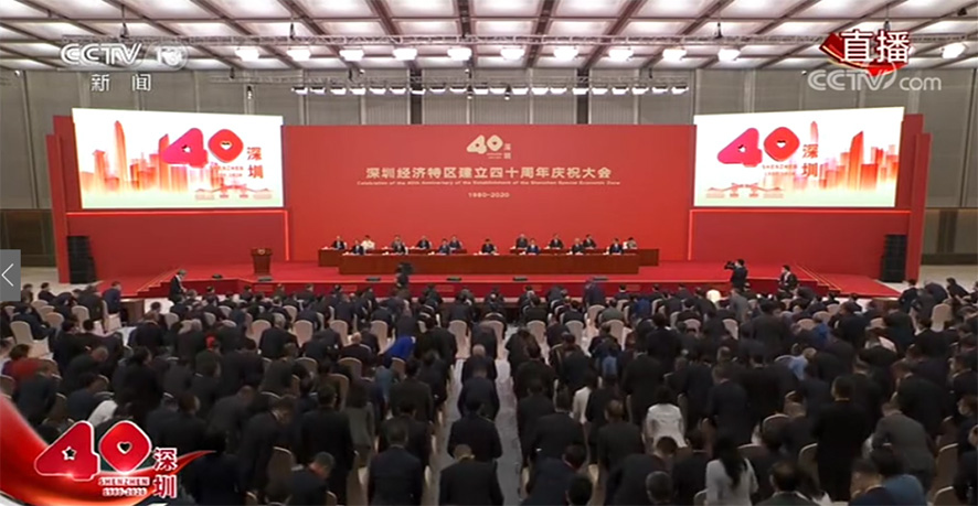 2020年10月14日上午,深圳經濟特區建立40周年慶祝大會在深圳隆重舉行。中共中央總書記、國家主席、中央軍委主席習近平出席大會并發表重要講話。