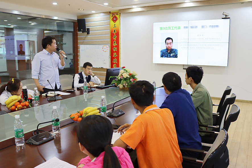 在員工心聲交流座談會(huì)現(xiàn)場的氣氛輕松活躍,員工代表們逐一發(fā)言、各抒己見,就日常工作及生活中遇到的問題和建議獻(xiàn)策建言,就部門間的溝通協(xié)作問題,公司的福利待遇問題,也提出了自己的想法和建議,希望住宿環(huán)境越來越舒適、飯?zhí)檬匙V越來越多樣化、文體活動(dòng)越來越豐富、業(yè)務(wù)培訓(xùn)越來越專業(yè)...語言簡單而樸實(shí),表達(dá)出了員工代表們對于公司各項(xiàng)改善提升的期許。