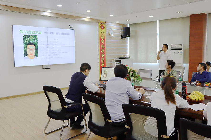 隨后,會(huì)議對上屆員工心聲交流座談會(huì)的提案落實(shí)情況進(jìn)行了回顧。其中第九屆員工心聲交流座談會(huì)共收集64個(gè)建議,50個(gè)已經(jīng)落地完成,完成率78%。其余因客觀條件不允許、國家政策限制和仍需進(jìn)一步完善的提案,或采用替代方案解決,或待條件成熟時(shí)實(shí)行,或不予以落實(shí)的均在會(huì)上做了詳細(xì)的解釋和說明,員工代表們紛紛表示理解。