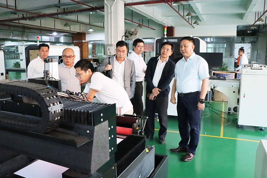 在集團執(zhí)行董事兼總經(jīng)理卓勁松先生的陪同下,來訪領(lǐng)導(dǎo)一行參觀了粵銘激光集團現(xiàn)代化智能制造生產(chǎn)中心、研發(fā)中心與激光設(shè)備展示廳,在參觀的過程中,卓總詳細(xì)介紹了我司各系列高端激光裝備的技術(shù)亮點及其應(yīng)用領(lǐng)域。先進的激光工藝、前沿的激光應(yīng)用和現(xiàn)代化的智能生產(chǎn)車間給來訪領(lǐng)導(dǎo)們留下了深刻的印象,不時好奇的與卓總探討激光在各自領(lǐng)域的用途。
