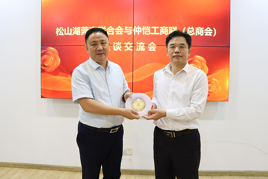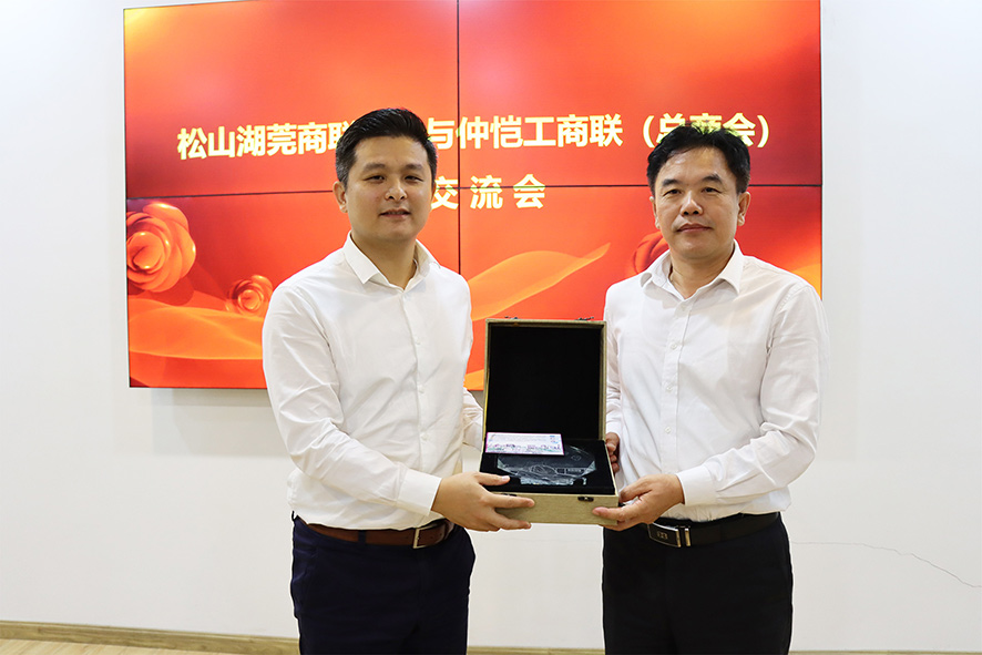 陳滿新會長代表松山湖莞商聯(lián)合會接受紀(jì)念品