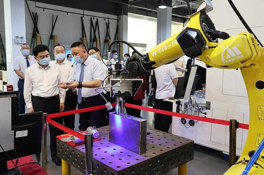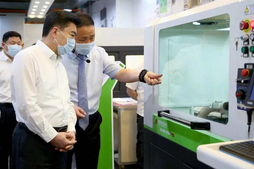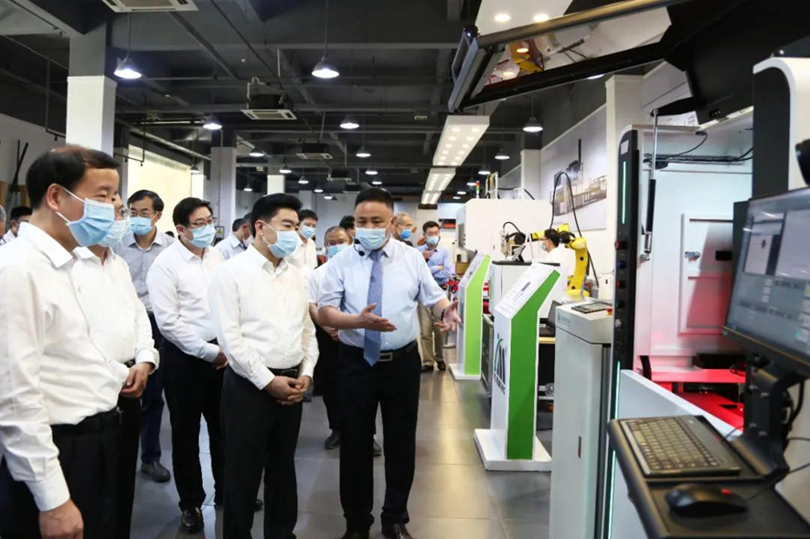 在卓勁松總經理的陪同下,王榮書記一行領導調研組實地走訪了粵銘激光集團現代化智能制造總裝車間、研發中心與激光設備展示廳,調研了粵銘激光集團生產經營狀況、生產管理過程中的痛點難點、產業升級及發展布局等課題,并聽取了卓勁松總經理關于粵銘激光集團大力布局汽車安全部件、3C電子產品、重型機械、航空航天、金屬加工等高端制造業的相關進展情況匯報,進一步了解粵銘激光集團各類高端智能激光裝備及數字化轉型發展的詳細情況。