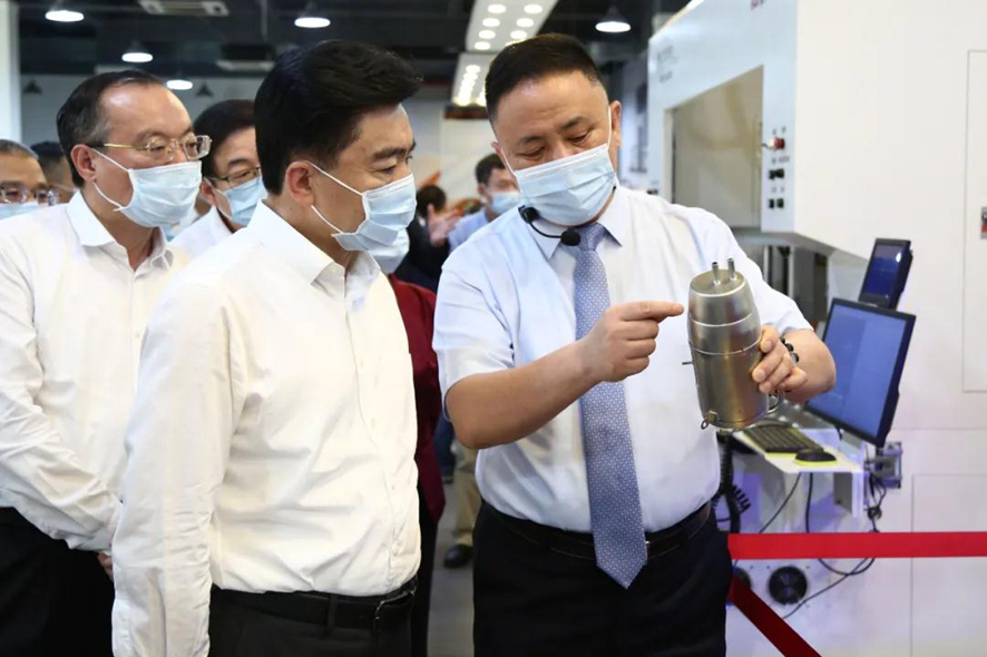 王榮書記肯定了我司在智能激光裝備集成技術和設備自動化整體解決方案設計所取得的成績,并表示產業集群是產業現代化發展的主要形態,也是現代產業體系建設的主要內容。我們要深入貫徹落實習近平總書記關于建設現代化經濟體系的重要論述,認真貫徹落實省委關于培育發展戰略性產業集群的工作部署,立足新發展階段、貫徹新發展理念、構建新發展格局,促進戰略性產業由集聚發展向集群發展全面提升,加快推進制造業數字化轉型,為廣東打造新發展格局的戰略支點奠定堅實基礎。要著力“補短板”“鍛長板”,探索關鍵核心技術攻關新型舉國體制優勢的“廣東路徑”,力爭在前瞻性基礎研究、關鍵核心技術上取得重大突破,加快推動制造業邁向全球產業鏈價值鏈中高端。