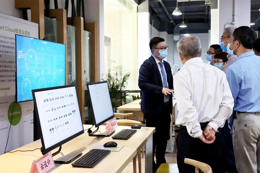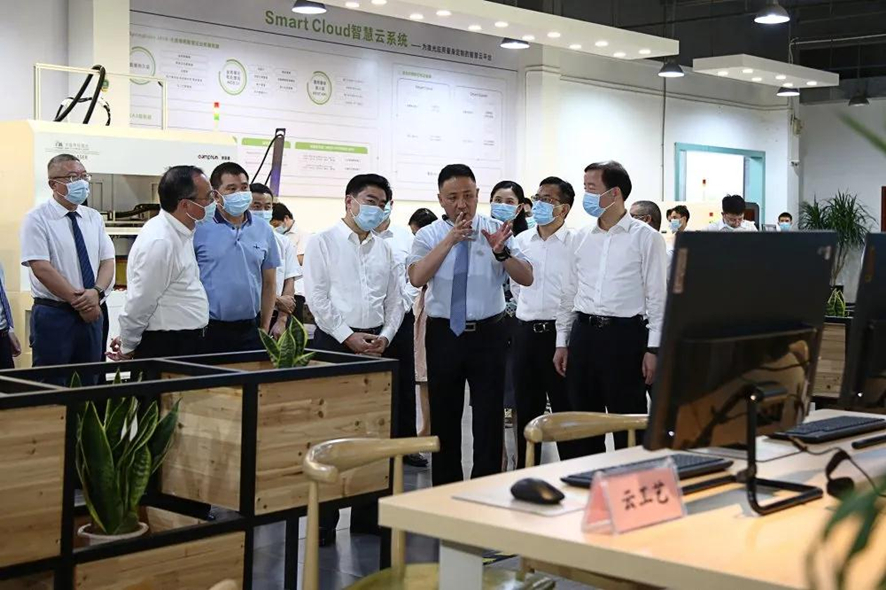 在粵銘激光集團松山湖生產基地一樓的產品展示大廳,王榮書記一行領導調研組觀摩了我司自主研發的SmartCloud智慧云平臺,卓總著重介紹到,SmartCloud智慧云平臺是粵銘激光集團基于工業互聯網+智能激光裝備理念而研發的,集工業設計、設備交易、產品加工、設備管理和維護于一體,專為激光+機器視覺+行業自動化應用而量身定制的智慧云平臺。依托平臺全方面的監控和管理功能,將圖形設計師、加工商、激光設備及終端用戶連為一體,為激光應用上下游用戶提供無縫連接的全方位立體服務,打通了粵銘激光集團客戶和供應鏈數據對接的最后一公里,引導上下游企業上云用云,推動先進制造業向數字化、智能化、云端化發展轉型升級。