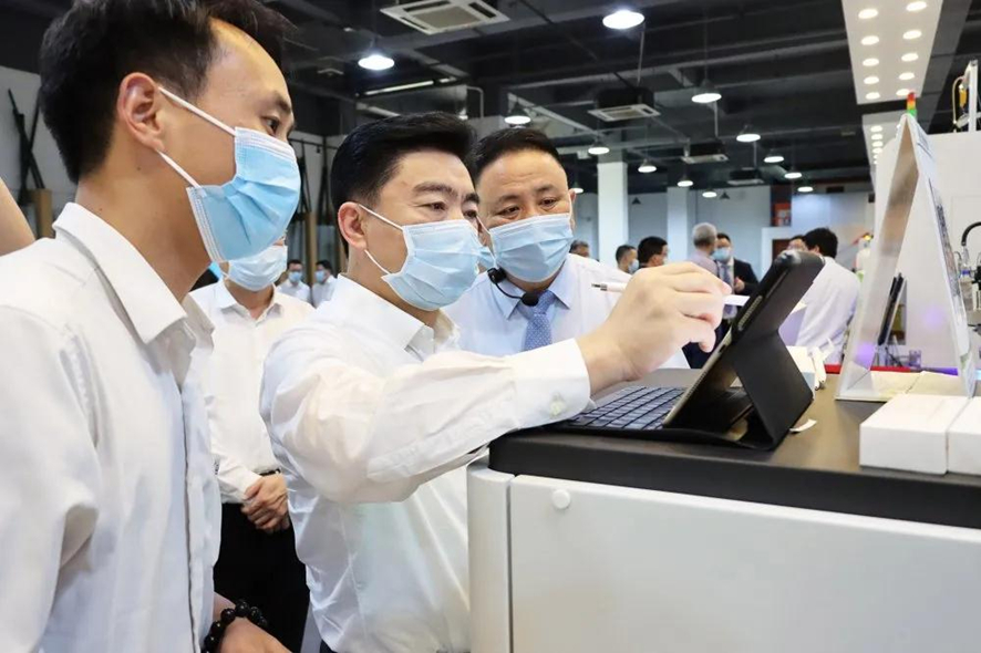 4月12日,廣東省政協黨組書記·主席王榮同志、廣東省政協黨組成員·副主席袁寶成同志、廣東省政協常委·省政協經濟委員會主任王珺同志、廣東省政協經濟委員會副主任劉軍同志、吳紫驪同志,帶領省政協調研組一行蒞臨粵銘激光集團東莞生產基地,就“加快產業集群數字化轉型,推動先進制造業高質量發展”和“我省戰略性產業集群發展中的問題及對策建議”開展專題調研。東莞市市長肖亞非同志、市政協黨組書記·主席駱招群同志全程陪同參加調研。