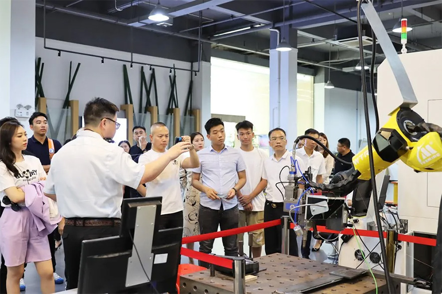 在王營錚總監(jiān)的陪同下,來訪的企業(yè)家代表一行參觀了粵銘激光集團現(xiàn)代化智能制造生產(chǎn)中心、研發(fā)中心與激光設(shè)備展示廳。在參觀的過程中,王總詳細介紹了我司各系列高端激光裝備的技術(shù)亮點及其應(yīng)用領(lǐng)域。先進的激光工藝、前沿的激光應(yīng)用和現(xiàn)代化的智能生產(chǎn)車間給來訪的企業(yè)家代表們留下了深刻的印象,并與王總探討激光在各自領(lǐng)域的用途,及其先進性。