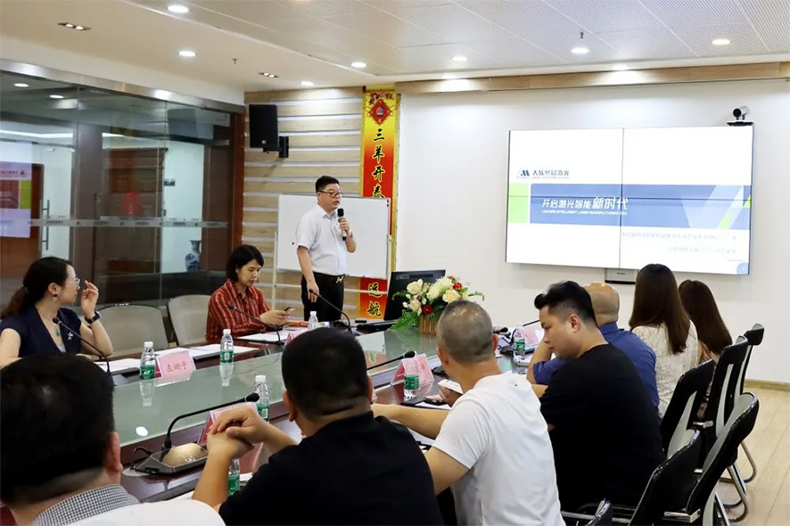 隨后,雙方在四樓大會議室進行了深入友好地交流。王總再次對莞佛兩地企業(yè)家聯(lián)合會一行的到來表示熱烈歡迎及感謝,希望通過此次的交流溝通,加深彼此之間的友誼和信任。在交流座談會上,王總進一步對粵銘激光集團公司發(fā)展歷程、企業(yè)文化、技術(shù)研發(fā)亮點進行了介紹,并結(jié)合生活生產(chǎn),深入淺出的介紹了粵銘激光集團各類高端激光設(shè)備產(chǎn)品應(yīng)用領(lǐng)域及優(yōu)勢。