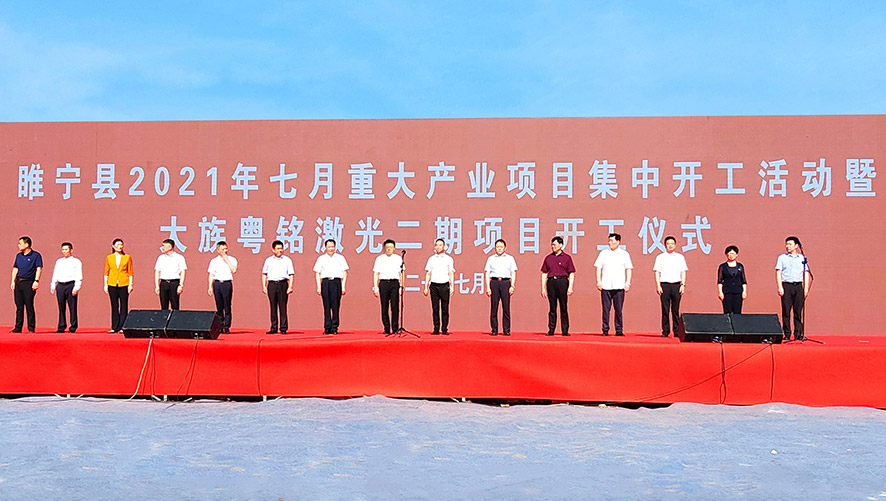 2021年7月10日上午,粵銘激光集團(tuán)在江蘇省睢寧生產(chǎn)基地隆重舉行“大族粵銘激光集團(tuán)睢寧生產(chǎn)基地二期工程擴(kuò)建項目開工儀式”,粵銘激光集團(tuán)的大型數(shù)字化激光裝備制造基地擴(kuò)建工程在江蘇省睢寧生產(chǎn)基地正式落地。