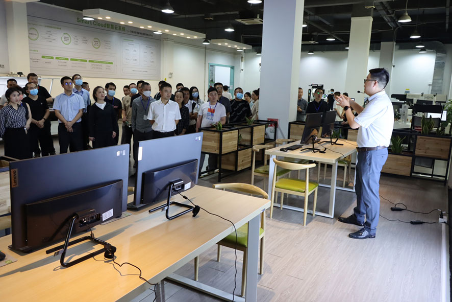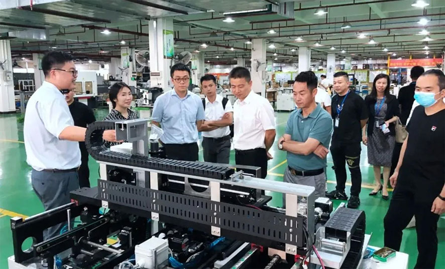 10月12日下午,參會嘉賓們實地參觀了大族粵銘激光集團現(xiàn)代化智能制造生產(chǎn)中心、研發(fā)中心與激光設備展示廳,在參觀的過程中,王營錚總監(jiān)詳細介紹了我司制鞋領域各系列高端激光裝備的技術亮點及優(yōu)勢,并就嘉賓們提出的問題進行了現(xiàn)場交流。