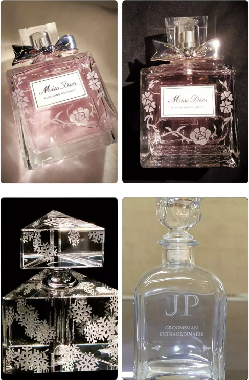 玻璃是所有盛放香水材料中最為合適的,它不會與液體發生反應而導致香味變調,并且利于鎖住香水的味道。傳統的手工雕刻或絲網印刷是直接在玻璃表面接觸,而香水瓶激光打標機采用的是無接觸性加工,能在任何異性表面上標刻且香水瓶不會遭受外力而受損。