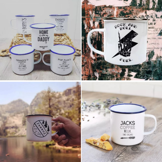 搪瓷杯的導(dǎo)熱性好、輕便、耐摔是戶外野炊必備良品。傳統(tǒng)的噴墨或絲網(wǎng)印刷并不能滿足在明火烤后仍保持標(biāo)記醒目,而激光雕刻可精準(zhǔn)到毫米以內(nèi),精細(xì)度高,不易磨損,多次的清洗或灼燒不會使得雕刻上的圖形扭曲。
