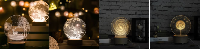 激光雕刻屬于非接觸性的加工方式,不會對亞克力造成機械擠壓或機械應力,不會造成機械變形,激光雕刻后的亞克力夜燈的燈體能夠讓人感受到平面所帶來的3D視覺效果,只需要更換不同的平面燈體就能演繹不同的故事。